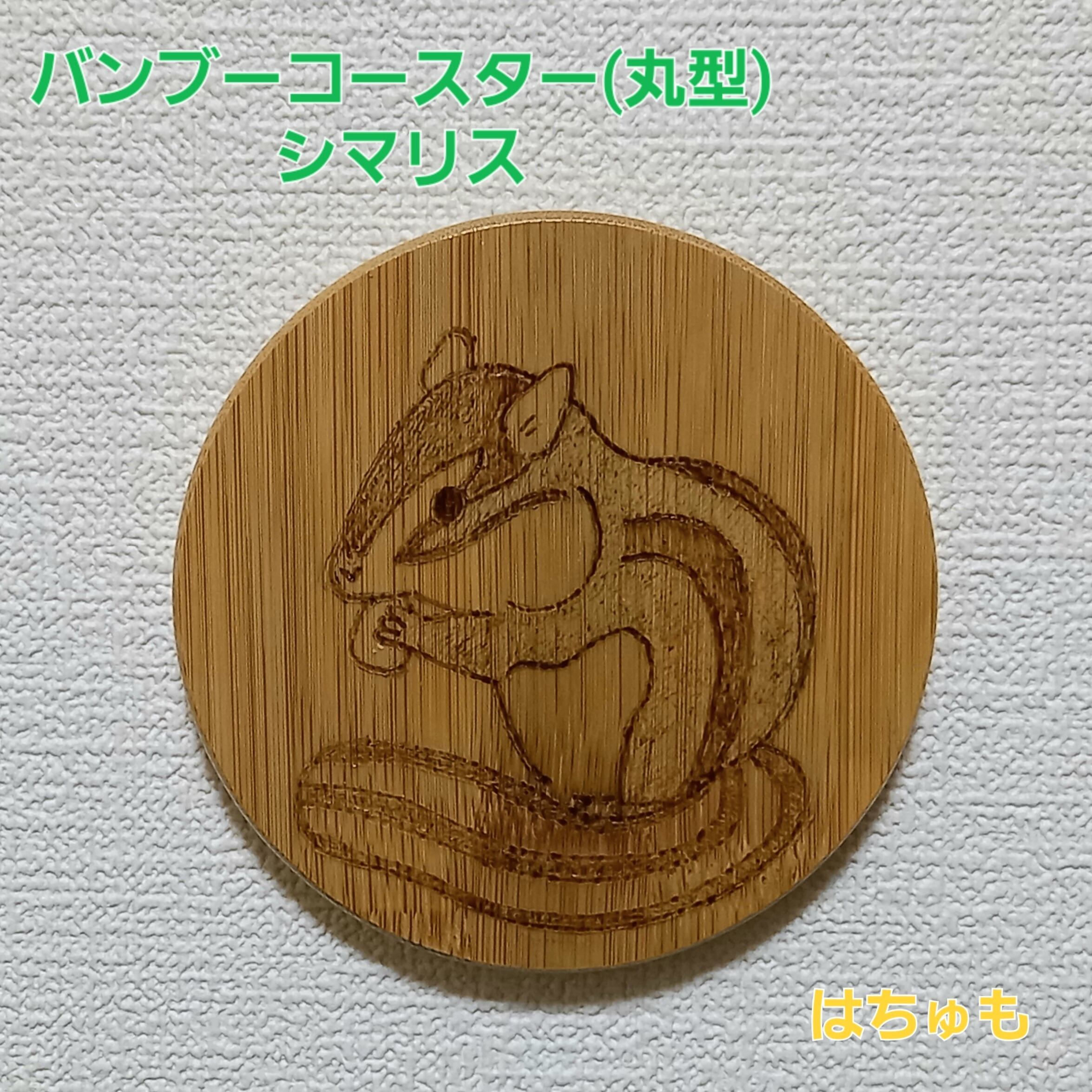 ☆1点物☆ バンブーコースター 丸型(直径約9.5cm) ウッドバーニング シマリス